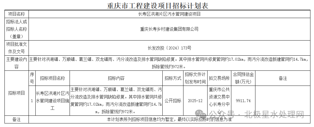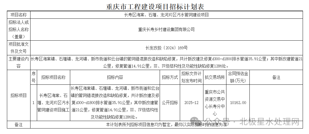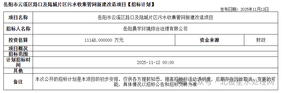 本周全国已有多个省市发布污水管网建设、水环境综合治理及污水处理厂建设等项目招标计划。