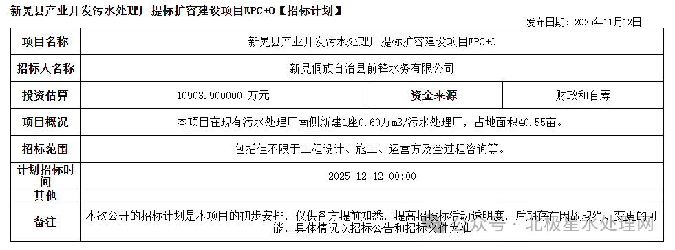 怀化市新晃县产业开发污水处理厂提标扩容建设项目EPC+O